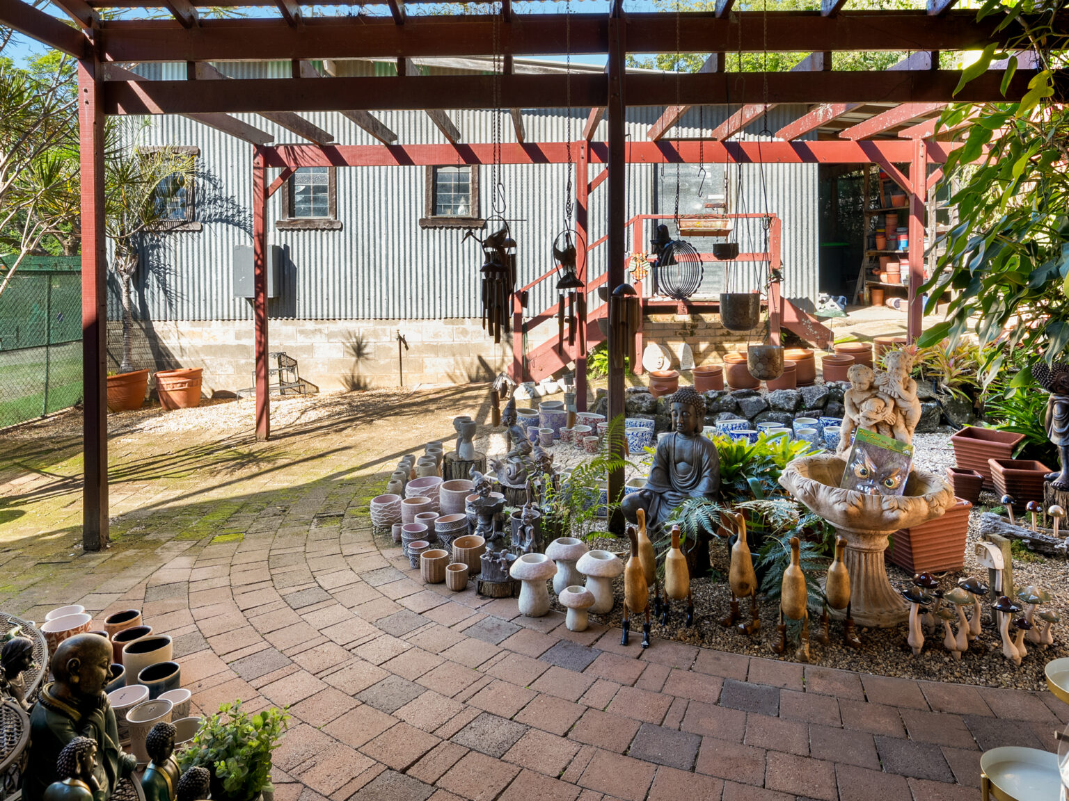 • Expansive internal space with storage, roller-door workshop, and courtyard garden