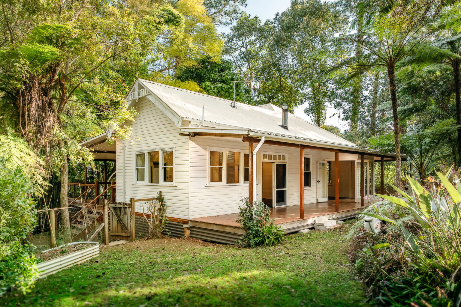 – Mature established gardens with raised veggie beds and room for chickens