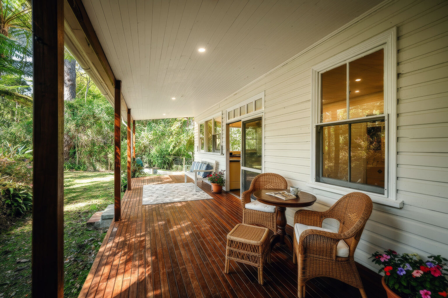 – Expansive wraparound verandahs – ideal for entertaining, relaxing or morning coffee in the sun. Long lunches with friends or evenings unwinding to the sounds of nature