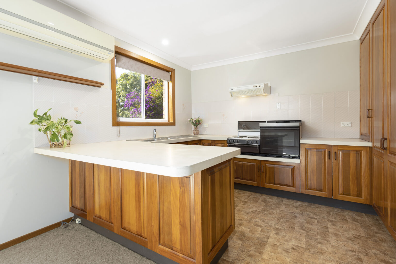 The timber and Laminex kitchen with its classic Chef electric oven, alongside a handy pantry, is ripe for culinary exploits or a stylish makeover. Comfort is guaranteed year-round with two reverse cycle air conditioners, one in the living area and one in a bedroom, as well as ceiling fans in both bedrooms.