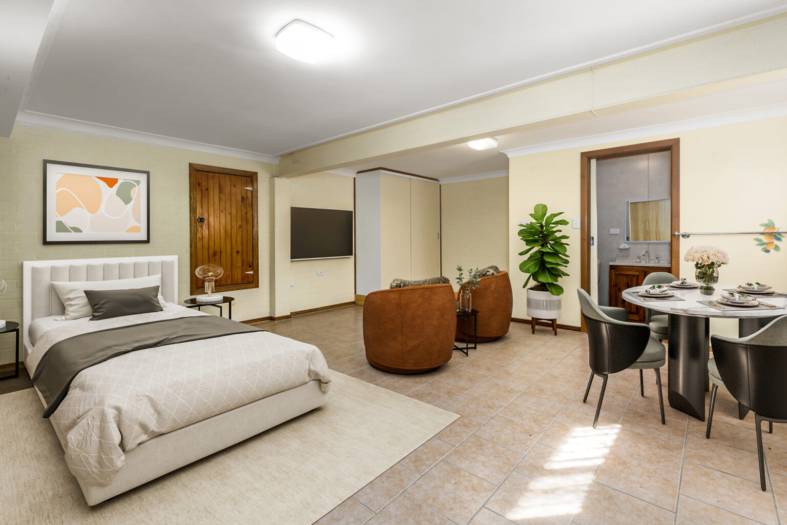 The cleverly designed layout boasts two levels of living space, creating an environment that caters to both privacy and communal family time. The entry-level features two comfortable bedrooms, complete with built-in wardrobes, and a bathroom, ensuring a retreat for relaxation. Downstairs unveils an open plan room offering flexible use, be it a teenagers haven, guest quarters, or a creative studio-complemented by a separate bathroom for added convenience.