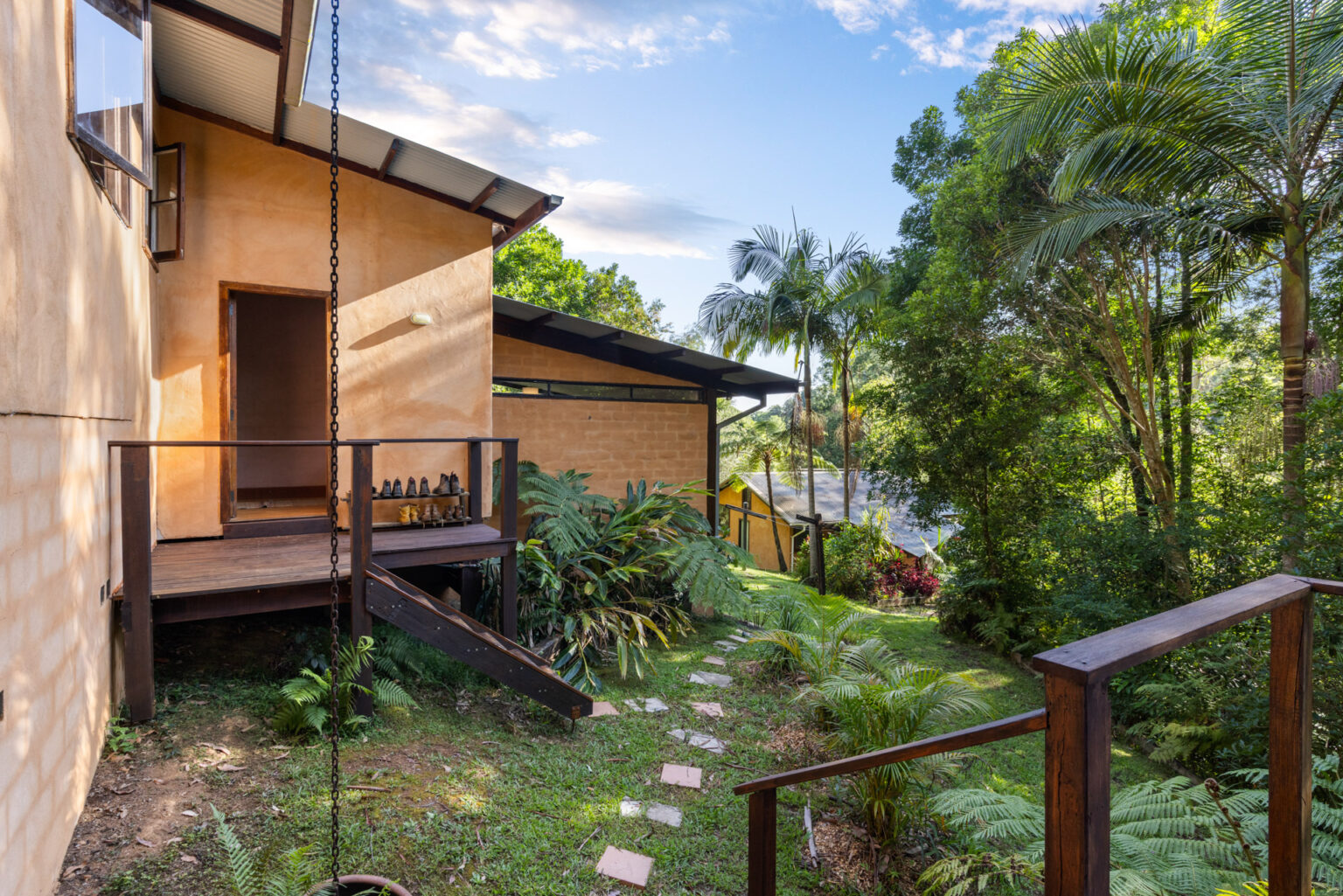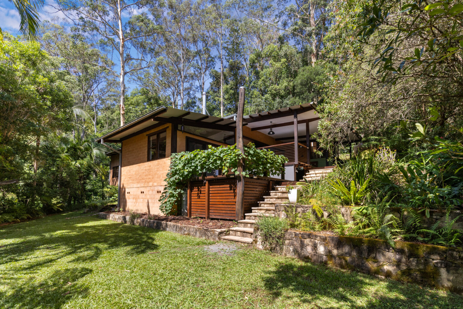 Tucked away in a peaceful cul-de-sac surrounded by lush greenery, this stunning mud brick and timber home captures the true essence of Bellingen living – where charm, creativity and comfort come together in perfect harmony.