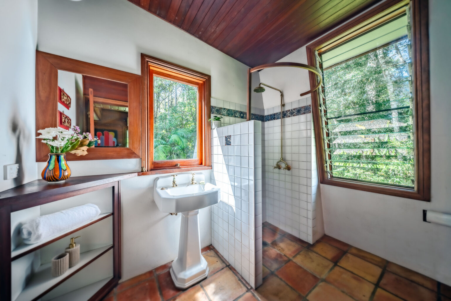 Linked by a covered walkway is a charming self-contained studio – a flexible space that currently earns income on Airbnb or serves beautifully as a creative studio, guest suite or private retreat.